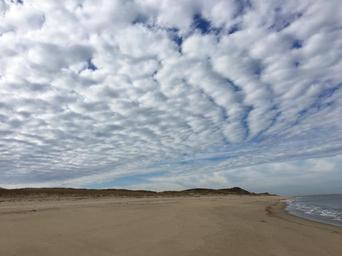 Keywords: beach clouds sky tide waves ocean sea sand coast sky clouds dunes shore surf water altocumulus sand dune