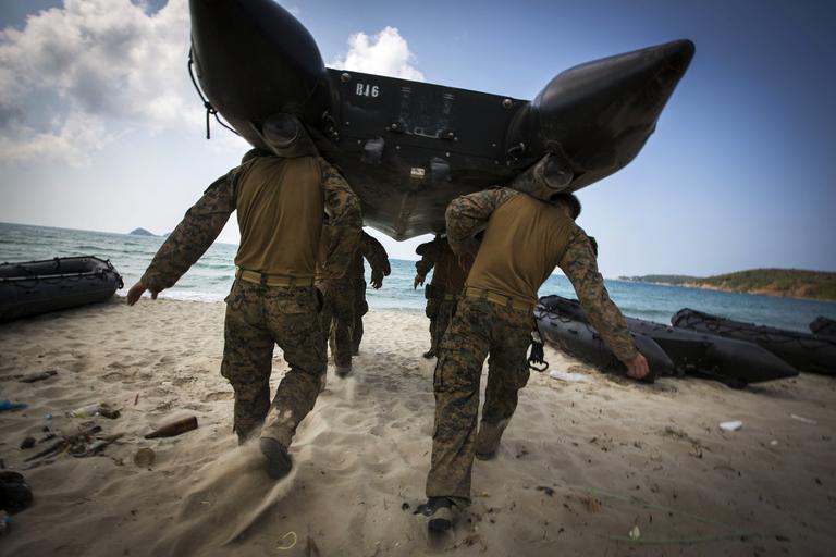 Keywords: Beach Day (12613618595).jpg Marines shoulder-carry a boat to water during an amphibious operations familiarization drill as part of Exercise Cobra Gold 2014 at Hat Yao beach Rayong Kingdom of Thailand Feb 12 2014 Cobra Gold in its 33rd iteration demonstrates the U S and the Kingdom of Thailand's commitment to our long-standing alliance and regional partnership prosperity and security in the Asia-Pacific region The drills were completed by the joint efforts of Royal Thai Marines with Reconnaissance Battalion and U S Marines with 3d Reconnaissance Battalion 3d Marine Division III Marine Expeditionary Force and the Republic of Korea Marines with 1st Reconnaissance Battalion U S Marine Corps photo by Sgt Matthew Troyer/Released https //www flickr com/photos/marine_corps/12613618595/ Beach Day 2014-02-12 11 18 https //www flickr com/people/40927340 N03 Marines from Arlington VA United States PD-USGov United States Marine Corps Official Page https //flickr com/photos/40927340 N03/12613618595 2016-09-03 22 13 18 United States Government Work Cobra Gold United States Marine Corps in Thailand Rayong Province Cobra Gold 2014 |