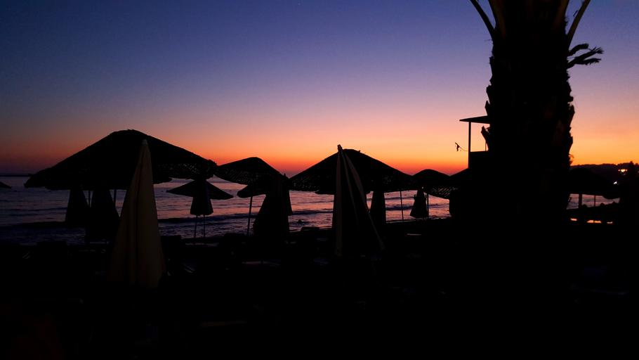 Keywords: beach evening blue red sunset sky twilight sea mood sun holiday abendstimmung water coast