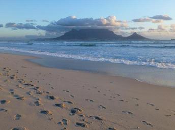 Keywords: beach footprints wave tracks in the sand footprints in the sand ocean sand beach table mountain south africa
