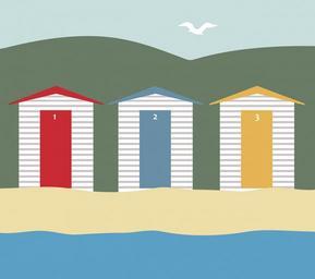 Keywords: beach huts beach houses beach hut sand vacation holiday coast wooden building seaside colorful nobody exterior traditional boxes seashore red blue orange art vector