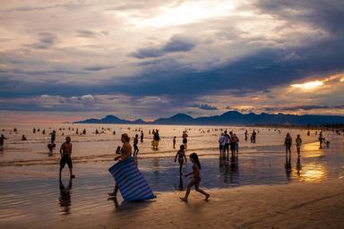 Keywords: beach people water mar sand sol litoral tourism sunset holidays horizon