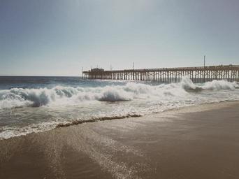 Keywords: beach pier ocean water sea summer vacation nature coast shore sand tourism wooden scenic jetty holiday pacific view waves breakwater foam splash spray power