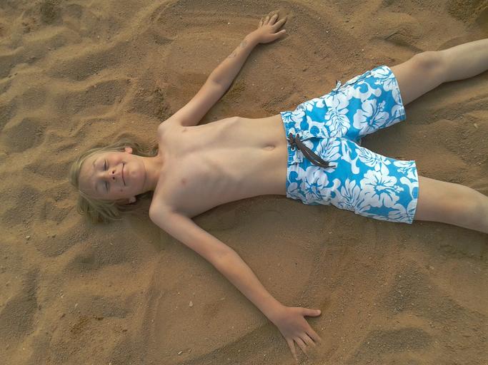 Keywords: beach relax child freedom boy sun sand lying
