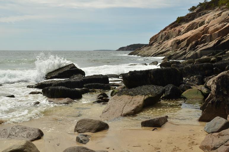 Keywords: beach rock more water golf branding splashes landscape nature acadia national park maine america