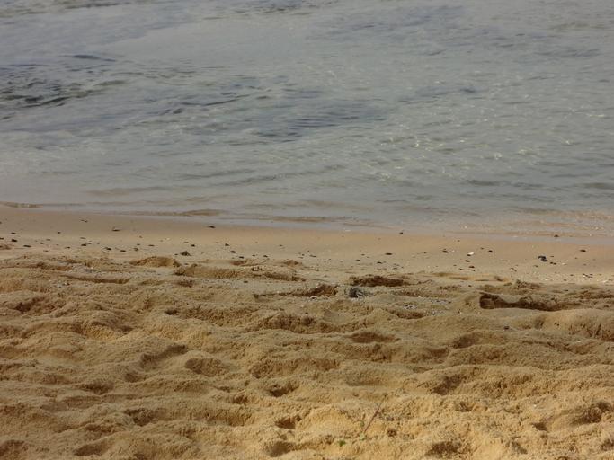 Keywords: beach sand foot prints ocean sea seaside sandy beach