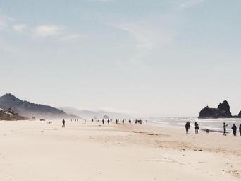 Keywords: beach sand sky people shore ocean sea waves rocks