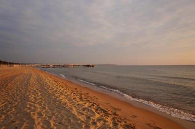 Keywords: beach sea the baltic sea sunrise sand the pier the waves sky sandy beach the coast rest poland