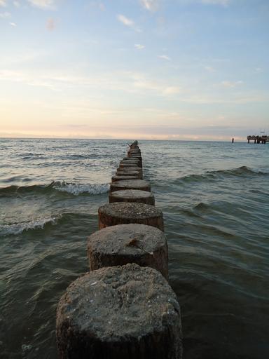 Keywords: beach sea holiday coast water sunset northern germany baltic sea rest landscape wood piles
