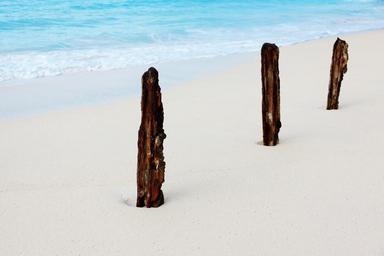 Keywords: beach sunny sea sand stick water seaside shore coast ocean sandy sticks three rusty rust