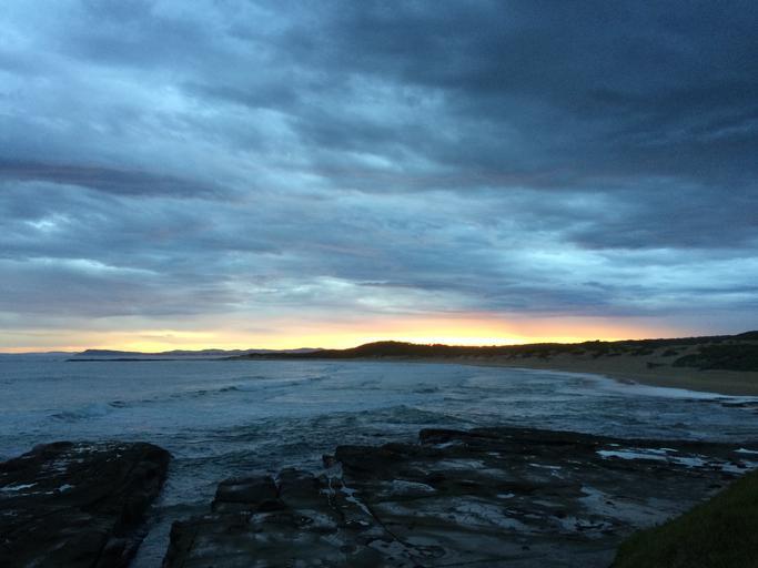 Keywords: beach sunset rocks ocean sea water sky