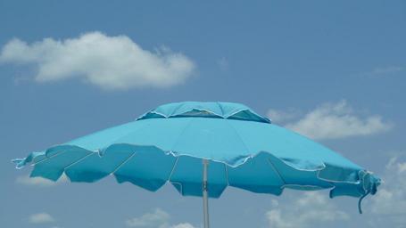 Keywords: beach umbrella sky blue sunny blue sky clouds