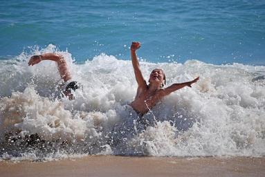 Keywords: beach wave children holiday swim summer sea water surf sand fun joy of life human travel sun