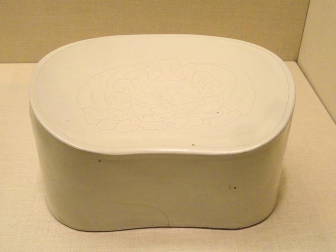 MAKE A MEME View Large Image ...Shaped Pillow, 12th century, Jin Dynasty, China, Ding ware, porcelain with incised peony design - Art Institute of Chicago - DSC00270.JPG Exhibit in the Art Institute of Chicago Chicago Illinois USA This artwork is in the public domain ...