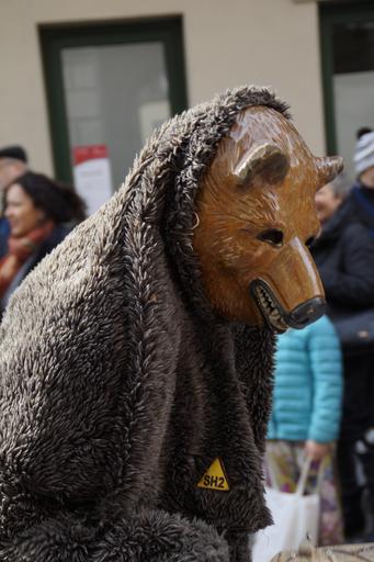 | Keywords: bear fur animal figure tiermaske fig fool haestraeger carnival fools jump panel haes fasnet move costume swabian alemannic masquerade customs strassenfasnet carved wooden mask tradition custom mask fools guild guild group carnival parade larva germany baden württemberg face dressed up portrait human person |