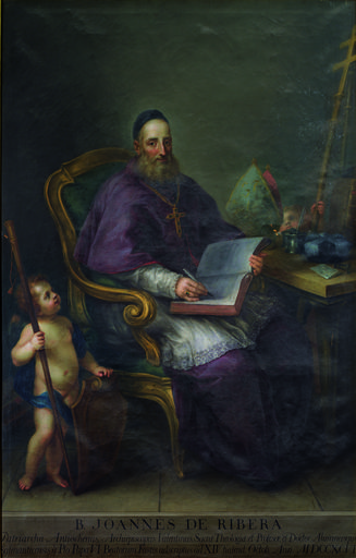 | Keywords: Beato Juan de Ribera. Gregorio Ferro..tif  Retrato póstumo de San Juan de Ribera 1532-1611 que llegó a ser arzobispo de Valencia y patriarca latino de Antioquía 1796 oil on canvas Size cm 138 210 Institution University of Salamanca http //diarium usal es/wiki/files/2013/11/LOCI-ET-IMAGINES-con-portada pdf accession number Loci et imagines / Imágenes y lugares - 800 años de patrimonio de la Universidad de Salamanca PD-old-100 40 961436 -5 667977 Juan de Ribera Gregorio Ferro Paintings in the University of Salamanca 1796 portrait paintings Loci et imagines |