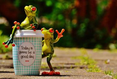 Keywords: beautiful day joy frog coffee cup happy happiness start joy of life life is beautiful cute emotion funny good mood keep smiling cheerful beginning sweet pep talk smile laugh courage positive day frogs
