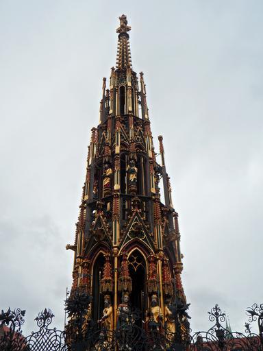 Keywords: beautiful fountain fountain nuremberg golden gilded filigree sky