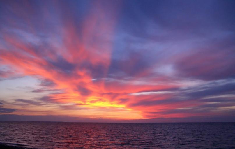 Keywords: sea ocean water nature sunset sky clouds romantic beauty beautiful vibrant colors colorful season outside outdoors sun lights peaceful calm