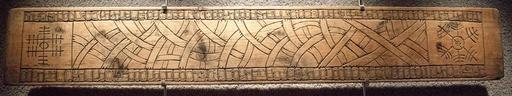 | Keywords: Bed-panel with runic writing and magical symbols.jpg Bed-panel with runic writing and magical symbols Ágy fejtámlája mágikus jelekkel és rúna-írással a rossz szellemek ellen Photo by Szilas in the National Museum of Iceland century 17 author Commonist PD-old Collections of the National Museum of Iceland Wooden reliefs Beds in Iceland |