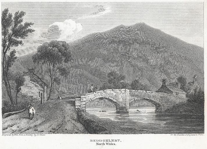 Keywords: Beddgelert, North Wales.jpeg Abstract View of a bridge over the Afon Glaslyn at Beddgelert showing a man crossing on horeback and dwellings alongside Size mm 128 152 exhibition history Institution National Library of Wales Technique print b w ; image size 100 x 152 mm object history object type PD-old-100-1923 place of creation place of discovery 1129065 Beddgelert North Wales Uploaded with GWToolset Beddgelert North Wales http //dams llgc org uk/behaviour/llgc-id 1129065/fedora-bdef image/reference Images uploaded as part of NLW - WMUK collaboration Welsh Landscape Collection Beddgelert Afon Glaslyn 1810s Rivers of Wales Horse riding in art Villages Mountains of Wales Bridges in Wales in art Bridges in art |