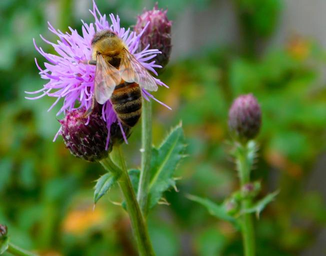 Keywords: bee bee on flower hard working work diligently work collect nectar close blossom bloom macro wild flowers nature violet purple