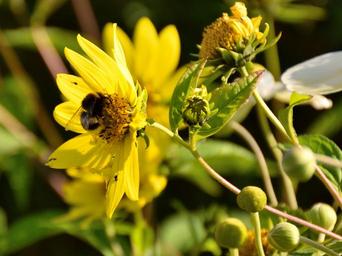 Keywords: bee blossom bloom close nature yellow yellow flower flower