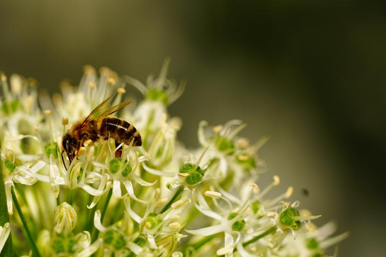 Keywords: bee blossom bloom sprinkle pollination insect nectar food intake white