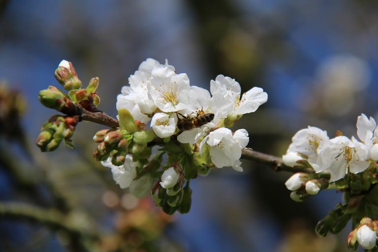 Keywords: bee cherry tree flower forager cherry blossoms white flower