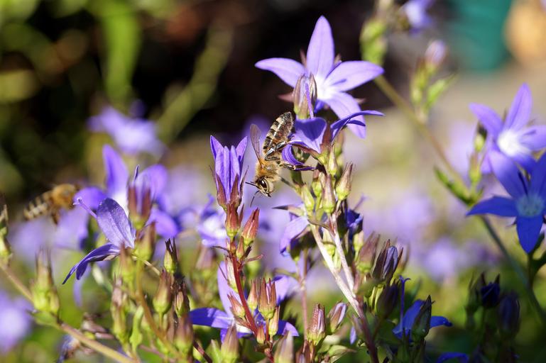 Keywords: bee flowers purple nature insect eyes wing