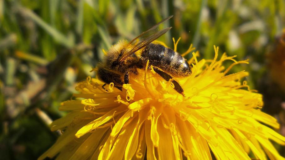 Keywords: bee hardworking pameliška flower yellow dandelion macro plant flowering