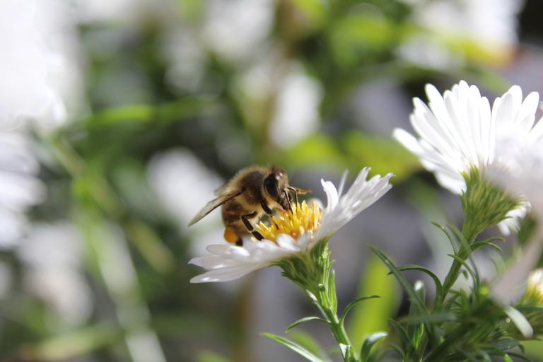 Keywords: bee insect animal plant white flowers close honey bee nature summer