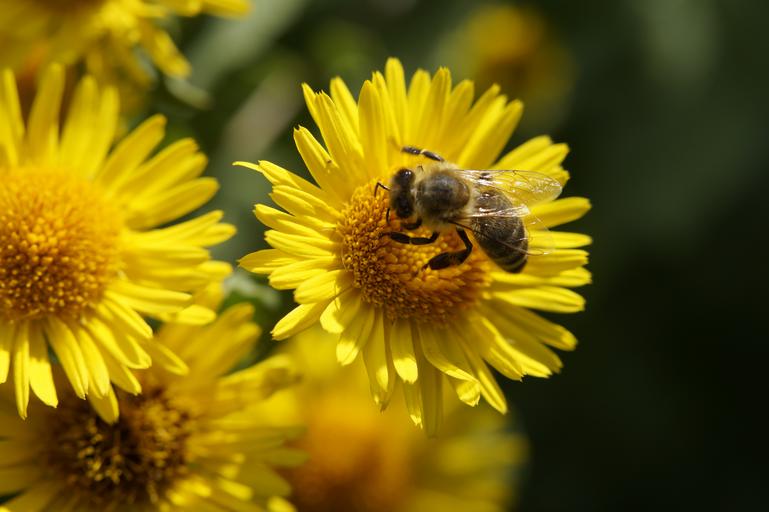 Keywords: bee nectar pollen pollination collect pollen flower summer insect blossom bloom bloom busy bee yellow close honey bee plant macro collect nectar