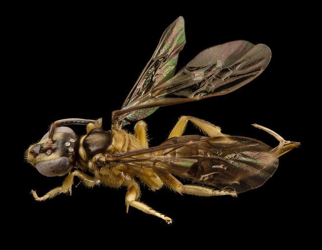 Keywords: bee bees biml usgs apoidea droege usgsbiml stackshot zerene stacker zerenestacker taxonomy:genus=osiris columbia south america southamerica sting stinger atlatl black background animal Osiris, Atlatl Godbee, Collected in Colombia The ancient Egyptian God Osiris was associated with both the afterlife and a greenish skin, and at least indirectly with Honey Bees. While early entomologists liked to demonstrate the depth of their knowledge naming genera according to classical Roman, Greek or, in this case Egyptian deities, the name in this case might be less inaccurate. This is because some Osiris species have a rather afterlifely pallid coloration sometimes verging on yellow-green. While there are 32 different species of Osiris, distributed from Mexico south to Argentina, almost nothing is known about the biologies of these nest parasites. There is one record of a young Godbee emerging from the nest of pollen carrying bees of the genus Paratetrapedia. Morphologically, the genus is notable for the length of its sting. It is not just the sting shaft that is elongate. The ventral part of the apical abdominal segment is developed into a long, almost tubular structure through which the sting can project. An interesting additional feature is the enormous development of what is, in almost all other bees, a tiny strut at the base of the sting shaft. In Osiris this forms a very elongate structure that looks like an atlatl or spear-thrower. Perhaps these remarkable embellishments serve to drive the sting home if the cuckoo should invade a nest while the rightful occupant is inside, or be caught in flagrante delicto by the returning mother. ~~~~~~~~~~{{{{{{0}}}}}}~~~~~~~~~~ All photographs are public domain, feel free to download and use as you wish. Photography Information: Canon Mark II 5D, Zerene Stacker, Stackshot Sled, 65mm Canon MP-E 1-5X macro lens, Twin Macro Flash in Styrofoam Cooler, F5.0, ISO 100, Shutter Speed 200 Further in Summer than the Birds Pathetic from the Grass A minor Nation celebrates Its unobtrusive Mass. No Ordinance be seen So gradual the Grace A pensive Custom it becomes Enlarging Loneliness. Antiquest felt at Noon When August burning low Arise this spectral Canticle Repose to typify Remit as yet no Grace No Furrow on the Glow Yet a Druidic Difference Enhances Nature now -- Emily Dickinson Want some Useful Links to the Techniques We Use? Well now here you go Citizen: Basic USGSBIML set up: www.youtube.com/watch?v=S-_yvIsucOY USGSBIML Photoshopping Technique: Note that we now have added using the burn tool at 50% opacity set to shadows to clean up the halos that bleed into the black background from "hot" color sections of the picture. www.youtube.com/watch?v=Bdmx_8zqvN4 PDF of Basic USGSBIML Photography Set Up: ftp://ftpext.usgs.gov/pub/er/md/laurel/Droege/How%20to%20Take%20MacroPhotographs%20of%20Insects%20BIML%20Lab2.pdf Google Hangout Demonstration of Techniques: plus.google.com/events/c5569losvskrv2nu606ltof8odo or www.youtube.com/watch?v=4c15neFttoU Excellent Technical Form on Stacking: www.photomacrography.net/ Contact information: Sam Droege sdroege@usgs.gov 301 497 5840 Osiris, Atlatl Godbee, Collected in Colombia The ancient Egyptian God Osiris was associated with both the afterlife and a greenish skin, and at least indirectly with Honey Bees. While early entomologists liked to demonstrate the depth of their knowledge naming genera according to classical Roman, Greek or, in this case Egyptian deities, the name in this case might be less inaccurate. This is because some Osiris species have a rather afterlifely pallid coloration sometimes verging on yellow-green. While there are 32 different species of Osiris, distributed from Mexico south to Argentina, almost nothing is known about the biologies of these nest parasites. There is one record of a young Godbee emerging from the nest of pollen carrying bees of the genus Paratetrapedia. Morphologically, the genus is notable for the length of its sting. It is not just the sting shaft that is elongate. The ventral part of the apical abdominal segment is developed into a long, almost tubular structure through which the sting can project. An interesting additional feature is the enormous development of what is, in almost all other bees, a tiny strut at the base of the sting shaft. In Osiris this forms a very elongate structure that looks like an atlatl or spear-thrower. Perhaps these remarkable embellishments serve to drive the sting home if the cuckoo should invade a nest while the rightful occupant is inside, or be caught in flagrante delicto by the returning mother. ~~~~~~~~~~{{{{{{0}}}}}}~~~~~~~~~~ All photographs are public domain, feel free to download and use as you wish. Photography Information: Canon Mark II 5D, Zerene Stacker, Stackshot Sled, 65mm Canon MP-E 1-5X macro lens, Twin Macro Flash in Styrofoam Cooler, F5.0, ISO 100, Shutter Speed 200 Further in Summer than the Birds Pathetic from the Grass A minor Nation celebrates Its unobtrusive Mass. No Ordinance be seen So gradual the Grace A pensive Custom it becomes Enlarging Loneliness. Antiquest felt at Noon When August burning low Arise this spectral Canticle Repose to typify Remit as yet no Grace No Furrow on the Glow Yet a Druidic Difference Enhances Nature now -- Emily Dickinson Want some Useful Links to the Techniques We Use? Well now here you go Citizen: Basic USGSBIML set up: www.youtube.com/watch?v=S-_yvIsucOY USGSBIML Photoshopping Technique: Note that we now have added using the burn tool at 50% opacity set to shadows to clean up the halos that bleed into the black background from "hot" color sections of the picture. www.youtube.com/watch?v=Bdmx_8zqvN4 PDF of Basic USGSBIML Photography Set Up: ftp://ftpext.usgs.gov/pub/er/md/laurel/Droege/How%20to%20Take%20MacroPhotographs%20of%20Insects%20BIML%20Lab2.pdf Google Hangout Demonstration of Techniques: plus.google.com/events/c5569losvskrv2nu606ltof8odo or www.youtube.com/watch?v=4c15neFttoU Excellent