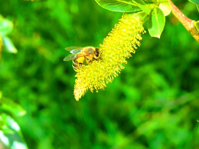 Keywords: bee spring pasture insect nature flower macro pollen sprinkle honey bee blossom bee pollen flowers insect bloom yellow green