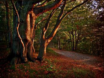 Keywords: beeches forest leskowiec beskids way sunset branches lighting
