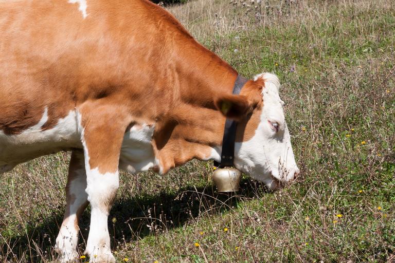Keywords: beef jungrind calf alm bell meadow graze nature agriculture livestock pasture cattle cow animal ruminant alpine herbivores flock summer highlands mammal