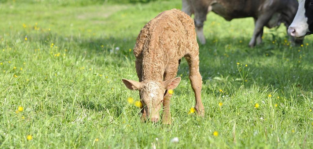 Keywords: beef young animal animal livestock cattle calf meadow grass pasture eat mammal