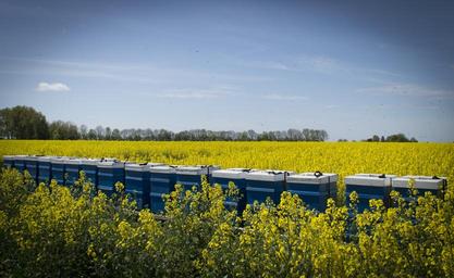 Keywords: bees rapeseed nature rapeseed field hive groningen blue yellow spring bloom cloud