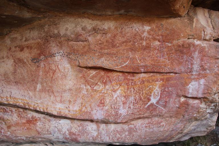 Keywords: Beeswax dot snake on ochre paintings - Google Art Project.jpg 408009 Unknown Australian /collection/australian-rock-art/artwork/beeswax-dot-snake-on-ochre-paintings-unknown/409018/ Unknown /collection/australian-rock-art/ Australian Rock Art 393003 http //www griffith edu au/ 11/23/2011 1 44 26 AM /collection/australian-rock-art/artwork/beeswax-dot-snake-on-ochre-paintings-unknown/409018/ 1517 The Djulirri rock art site is located in the Wellington Range of Arnhem Land Northern Territory Australia It forms part of the Maung language group ™s traditional territory and is located at the western side of senior traditional owner Ronald Lamilami ™s Namunidjbuk clan estate Across a 52 m length of dissected sandstone Djulirri ™s main gallery was found to contain more than 1100 paintings 17 stencils one print and 46 figures made from native beeswax in three adjacent wall/ceiling areas There are a further 52 panels with at least another 2000 examples of rock art making it the largest known pigment site yet documented in Australia The site is arranged in a horseshoe-like shape measuring about 180 m by 120 m oriented roughly northwest “southeast with a cluster of other sites nearby Paintings made with combinations of red yellow white and black pigment typical of the region ™s recent rock art including introduced contact period subject matter are concentrated in Djulirri ™s main shelter and the rest of the southern wing of the horseshoe Representative subject matter of all previous Arnhem Land rock art forms and styles is concentrated in the northern wing with a few mixed panels towards the back It is within the main shelter that most of the beeswax art can also be found A few of these designs lie over or under painted depictions of watercraft including European tall ships and Southeast Asian sailing vessels praus This allowed us to use radiocarbon dating to obtain minimum or maximum ages for some diagnostic contact period paintings superimposed over or under the beeswax figures The site was intensively documented between 2008-2011 by a Griffith University led team of archaeologists and local Aboriginal people as part of Picturing Change an Australian-wide investigation into contact period rock art rock art 409018 False 1664 3/24/2012 12 49 34 AM Djulirri 7 painting 1510 1670 Djulirri Western Arnhem Land Finding 1517 - 1664 False 1 50146627565982 object beeswax-dot-snake-on-ochre-paintings-unknown Beeswax dot snake on ochre paintings b The Djulirri rock art site is located in the Wellington Range of Arnhem Land Northern Territory Australia It forms part of the Maung language group ™s traditional territory and is located at the western side of senior traditional owner Ronald Lamilami ™s Namunidjbuk clan estate Across a 52 m length of dissected sandstone Djulirri ™s main gallery was found to contain more than 1100 paintings 17 stencils one print and 46 figures made from native beeswax in three adjacent wall/ceiling areas There are a further 52 panels with at least another 2000 examples of rock art making it the largest known pigment site yet documented in Australia The site is arranged in a horseshoe-like shape measuring about 180 m by 120 m oriented roughly northwest “southeast with a cluster of other sites nearby Paintings made with combinations of red yellow white and black pigment typical of the region ™s recent rock art including introduced contact period subject matter are concentrated in Djulirri ™s main shelter and the rest of the southern wing of the horseshoe Representative subject matter of all previous Arnhem Land rock art forms and styles is concentrated in the northern wing with a few mixed panels towards the back It is within the main shelter that most of the beeswax art can also be found A few of these designs lie over or under painted depictions of watercraft including European tall ships and Southeast Asian sailing vessels praus This allowed us to use radiocarbon dating to obtain minimum or maximum ages for some diagnostic contact period paintings superimposed over or under the beeswax figures The site was intensively documented between 2008-2011 by a Griffith University led team of archaeologists and local Aboriginal people as part of Picturing Change an Australian-wide investigation into contact period rock art rock art special url_id kwGLhbJHIC5g_g PD-art-100 Google Art Project works by unknown artist Rock paintings of animals Rock paintings in Australia |