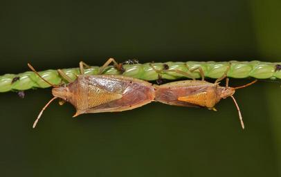 Keywords: beetle bug stink bug rice stink bug insect insectoid creature breed breeding mating back to back nature close up grass entomology arthropod oebalus pugnax