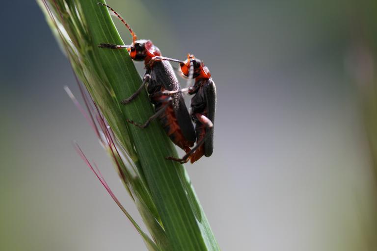Keywords: beetle pairing green insect close nature reproduction couple animal luck love macro sex spring red multiplication pair plant make love green leaf