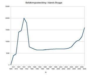 Keywords: Befolkningsutveckling islands brygge.jpg sv Befolkningsutveckling i Islands Brygge diagram skapat i OpenOffice org Calc own Grillo 2009-11-20 Islands Brygge