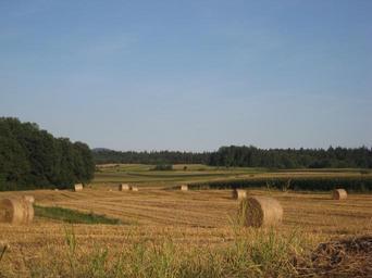 Keywords: BelaKrajina-Crnomelj-polje.JPG en Field near Črnomelj Bela Krajina Slovenia own Sl-Ziga 2009 Agriculture in White Carniola Municipality of Črnomelj Fields in Slovenia Bales of hay or straw Fields in July