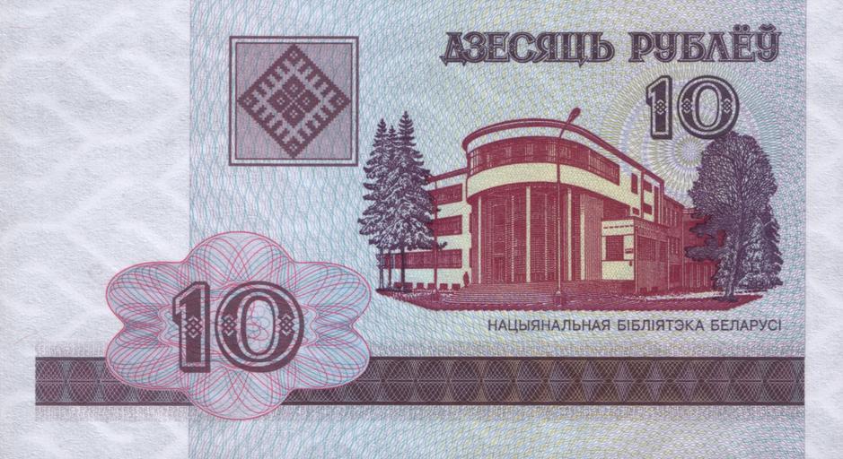 | Keywords: Belarus-2000-Bill-10-Obverse.jpg 10 ублей Бело уссии 2000 10 roubles of Belarus 2000 own scan 2000 National Bank of Republic of Belarus ациональный банк Республики Бела усь ацыянальны Банк Рэспублiкi Бела усь PD-BY-exempt banknotes Banknotes of Belarus 2000 National Library of Belarus Banknotes with a face value of 10 Blue banknotes Libraries on banknotes |