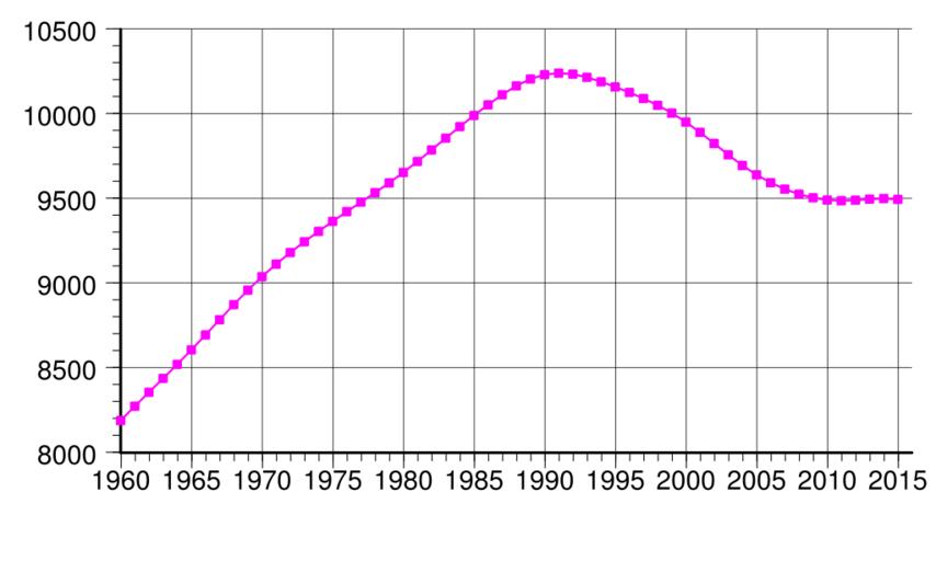 | Keywords: Belarus population.svg en Belarus' population 1960-2015 From UN estimates World Population Prospects http //esa un org/unpd/wpp/Excel-Data/population htm The 2015 Revision<br/>Y-axis Number of inhabitants in thousands 2014-09-28 own Delphi234 other versions Generated with Wikimedia SVG Chart SVG Chart/box cc-zero Temporal population graphs of Belarus |