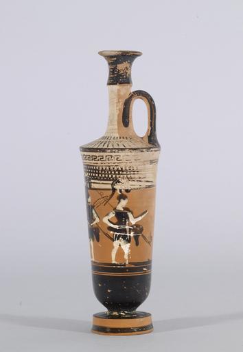 Keywords: Beldam Painter - Three Amazons - Walters 48249 - Right.jpg Three Amazons on this black-figure lekythos face right and appear to march one after the other Their skin is white but their facial features eroded or rubbed away are indistinguishable Each wears a helmet holds a long spear and has a horizontal quiver The middle figure holds both hands near her waist; the other two have one hand raised Amazons are first mentioned in the Iliad 6 186 as allies of the Trojans; later authors emphasize their fearlessness and their status as foreigners They were introduced on Attic vases in the early 6th century BC and quickly became a popular subject Early black-figure depictions of Amazons resemble Greek warriors with one notable difference-their white skin color which identifies them as women In red-figure vases the Amazons acquire more feminine features and bodies and their foreigness is emphasized by their attire Scythian or Thracian clothing and subsequently Persian garb In some places in Greece Amazons were the object of cult Jennifer Larson 1995 111-16 has suggested that despite the fact that they were considered hostile to the Greeks their complete otherness from the Greek way of life also gave them protective powers and entitled them to be worshiped as heroines ca 500 BC terracotta cm 20 5 6 accession number 48 249 62 Joseph Brummer New York date and mode of acquisition unknown Henry Walters city Baltimore Walters Art Museum Henry Walters Acquired by Henry Walters 1924 Heroes Mortals and Myths in Ancient Greece The Walters Art Museum Baltimore; Frist Center for the Visual Arts Nashville; San Diego Museum Of Art San Diego; Alexander S Onassis Public Benefit Foundation USA New York 2009-2011 place of origin Attica Greece Walters Art Museum license Ancient Greek black-figure pottery in the Walters Art Museum Beldam Painter Media contributed by the Walters Art Museum needs category review Media contributed by the Walters Art Museum needs artist update |
