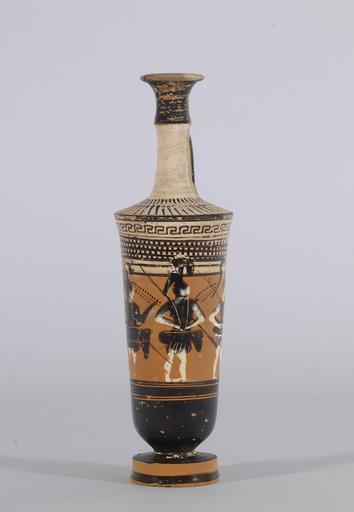 Keywords: Beldam Painter - Three Amazons - Walters 48249.jpg Three Amazons on this black-figure lekythos face right and appear to march one after the other Their skin is white but their facial features eroded or rubbed away are indistinguishable Each wears a helmet holds a long spear and has a horizontal quiver The middle figure holds both hands near her waist; the other two have one hand raised Amazons are first mentioned in the Iliad 6 186 as allies of the Trojans; later authors emphasize their fearlessness and their status as foreigners They were introduced on Attic vases in the early 6th century BC and quickly became a popular subject Early black-figure depictions of Amazons resemble Greek warriors with one notable difference-their white skin color which identifies them as women In red-figure vases the Amazons acquire more feminine features and bodies and their foreigness is emphasized by their attire Scythian or Thracian clothing and subsequently Persian garb In some places in Greece Amazons were the object of cult Jennifer Larson 1995 111-16 has suggested that despite the fact that they were considered hostile to the Greeks their complete otherness from the Greek way of life also gave them protective powers and entitled them to be worshiped as heroines ca 500 BC terracotta cm 20 5 6 accession number 48 249 62 Joseph Brummer New York date and mode of acquisition unknown Henry Walters city Baltimore Walters Art Museum Henry Walters Acquired by Henry Walters 1924 Heroes Mortals and Myths in Ancient Greece The Walters Art Museum Baltimore; Frist Center for the Visual Arts Nashville; San Diego Museum Of Art San Diego; Alexander S Onassis Public Benefit Foundation USA New York 2009-2011 place of origin Attica Greece Walters Art Museum license Ancient Greek black-figure pottery in the Walters Art Museum Beldam Painter Media contributed by the Walters Art Museum needs category review Media contributed by the Walters Art Museum needs artist update |
