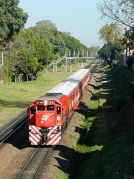 Keywords: Belgrano Norte Line.jpg en A Ferrovias Belgrano Norte Line train leaving Aristóbulo del Valle station https //www flickr com/photos/pablo25681/9051056248/ Pablo E Saibene 2012-05-12 Aristobulo del Valle train station Red locomotives Ferrocarril General Manuel Belgrano rolling stock Ferrovías EMD G22CU locomotives General Motors diesel-electric locomotives of Argentina cc-zero Chenzw 2015-05-23 |