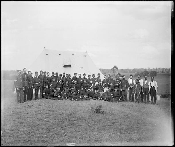 | Keywords: archives state records nsw staterecordsnsw newsouthwales blackandwhite military monochrome photo border outdoor black and white Title: Believed to be NSW volunteers Easter Encampment at Windsor April 1884 - Soldiers in front of a mess tent Dated: April 1884 Digital ID: NRS4481[Box875]_000004 Series: NRS 4481 Glass Negatives Government Printing Office [prints from] Rights: No known copyright restrictions www.records.nsw.gov.au/about-us/rights-and-permissions We'd love to hear from you if you use our photos/documents. Many other photos in our collection are available to view and browse on our website using Photo Investigator. Title: Believed to be NSW volunteers Easter Encampment at Windsor April 1884 - Soldiers in front of a mess tent Dated: April 1884 Digital ID: NRS4481[Box875]_000004 Series: NRS 4481 Glass Negatives Government Printing Office [prints from] Rights: No known copyright restrictions www.records.nsw.gov.au/about-us/rights-and-permissions We'd love to hear from you if you use our photos/documents. Many other photos in our collection are available to view and browse on our website using Photo Investigator. |